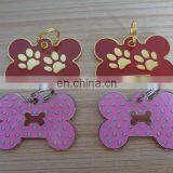 Bone Shape Two Paw Enamel Metal Pet Id Dog Cat Tag 30mm