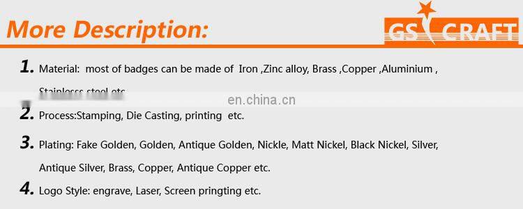 Plating | Gold / silver / bronze / copper etc. | Logo | please just send us your logo artwork. logo can be soft enamel, engraved,embossed,debossed etc |