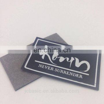 Synthetic PU leather labels, sometimes called pleather, are also a popular choice. Synthetic PU leather labels are more consistent in color and still feel similar to real leather.