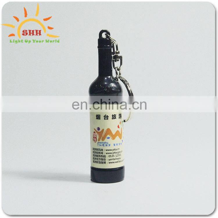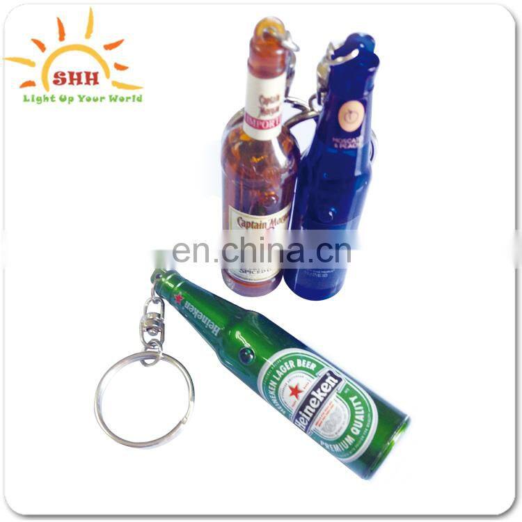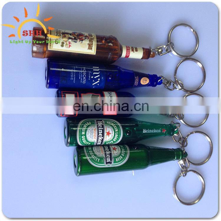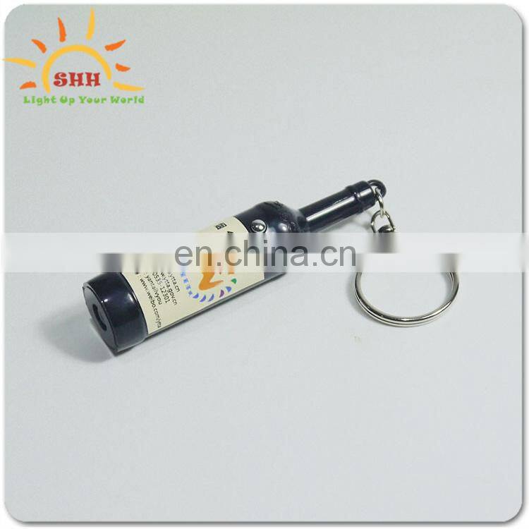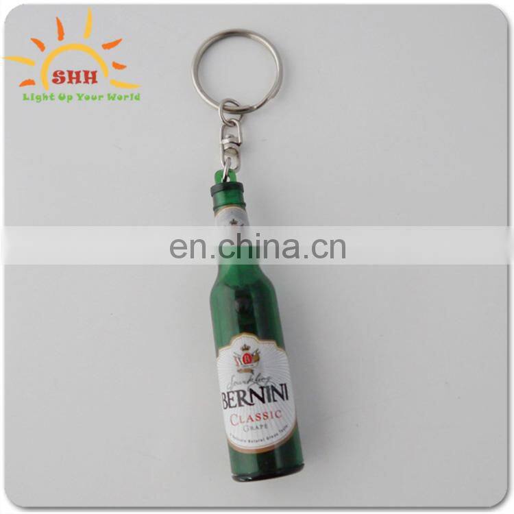 Beer shaped Led torch projector light up glow key ring chain wholesale for decoration promotion gifts