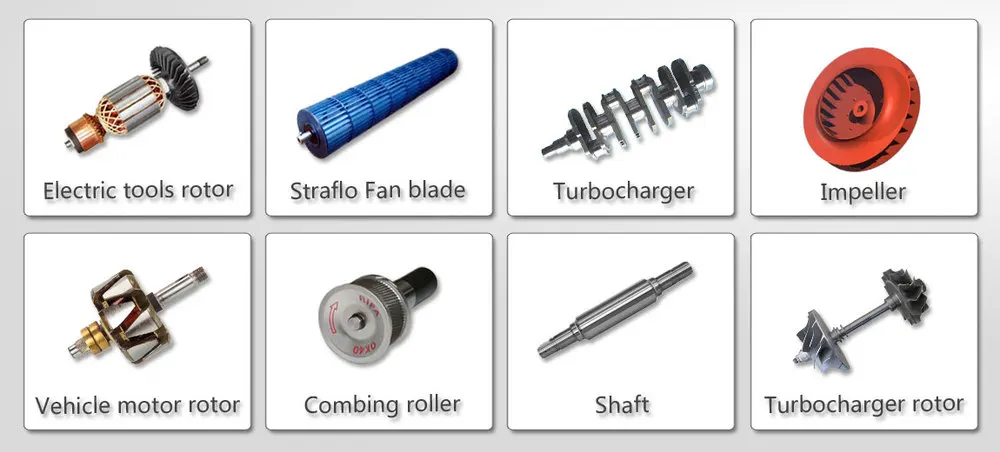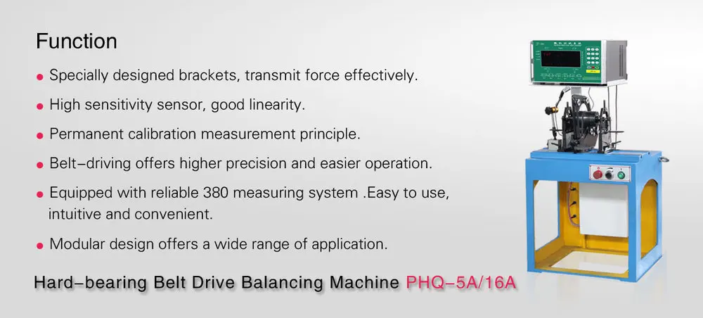 This balancing machine is widely used in balancing rotatable bodies, such as kinds of small-sized motors rotors, impeller, fans, crankshaft, turbocharger, water pump, roller, grinding wheel, main shaft of machine tool , textile machinery, tool , spindle, etc .. Driven by Nylon belt , equipped with Variable speed motor to drive .Which ensures high quality balancing and precision. quick booting ,easy operation. and high efficiency .
