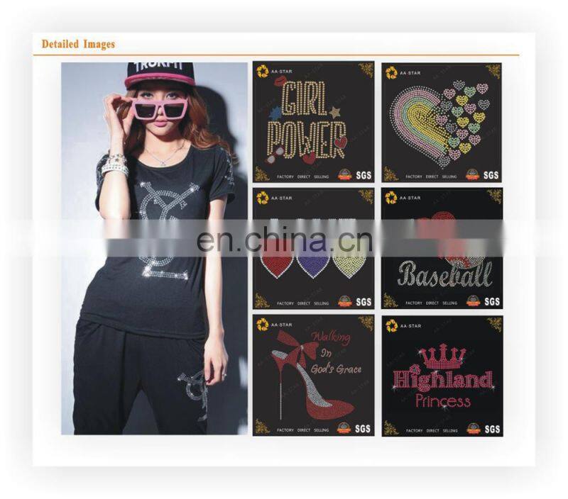 Our main products are hotfix rhinestone motif, laser cutting hotfix transfer, vacuum forming motif and silicon glue patch with metal claw base acrylic stone. All our product pass the test of SGS, Intertek, BVQI, UL, especially pass the 3-5 years old children special environmental requirements.