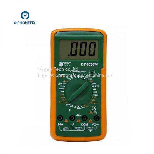 BEST 9205M multimeter is an Handheld Mobile Phone Repairing Testing tool, with LCD Digital Screen and buzzer Tester, can be used to Measure DC voltage / electric, AC voltage / current..., Handheld 9205M digital multimeter is the universal Digital Multimeter for Mobile Phone motherboard Repairing Testing.