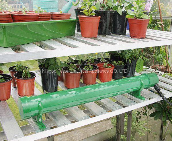 Although there are several types of heating methods suitable for greenhouses, warm gentle radiant heating in our opinion is one of the most suitable and economical for the typical greenhouse enthusiast. Unlike other tubular heaters, this one comes with a thermostat. They are comparatively cheap to install, can easily be moved and provide frost protection and low background heat.