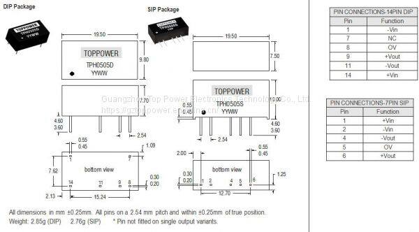 | Pin connection/7 PIN SIIP | 1(+Vin),2(-VIN),4(-VOUT),5(OV),6(+Vout) | ||||||||||||