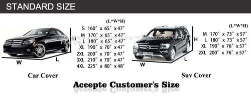 One car cover+one Wire polybag+one color card,5-10pcs/carton |