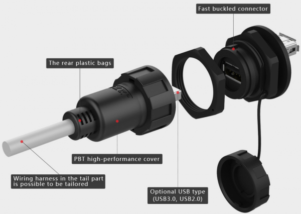 Circular Connector IP67 Waterproof Data USB 2.0 3.0 Connector for Data Transmission Equipment