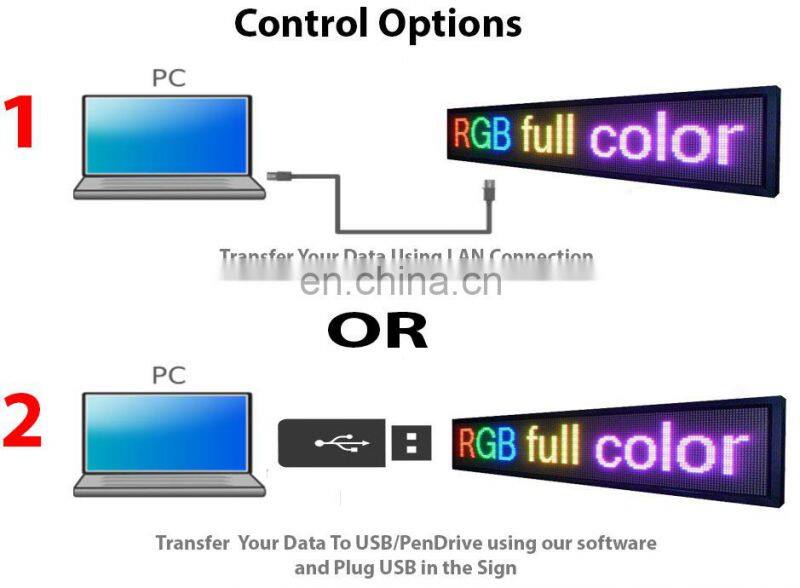 These are very easy to program with software we provide. Data can be transferred through USB or LAN . It constantly displays Full color Logos , Videos, Text , Neon sign features, Images , time , Animations, stopwatch ,countdown with hundred of special effects . You can add any image or logo of your choice.
