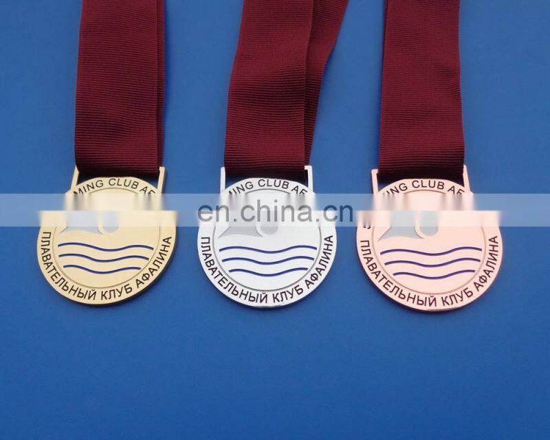 Gold, Silver, Copper Finish Russian Swimming Club Afalina Ribbon Medal