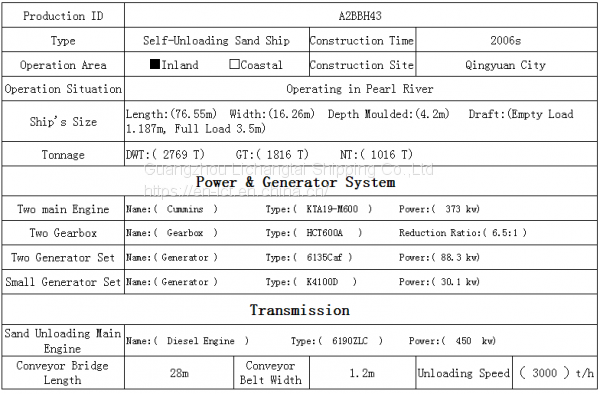 Sale: 5100T Inland Self-Unloading Sand ShipNegotiableMOQ: 1 Unit