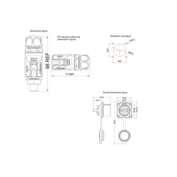 IP67 Waterproof Fireproof Circular USB Connector With USB Port Data Connector for Data Transmission Equipment
