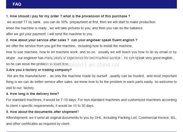 | Spindle | Chinese 6kw ATC spindle(Option:6kw Italian HSD spindle) |