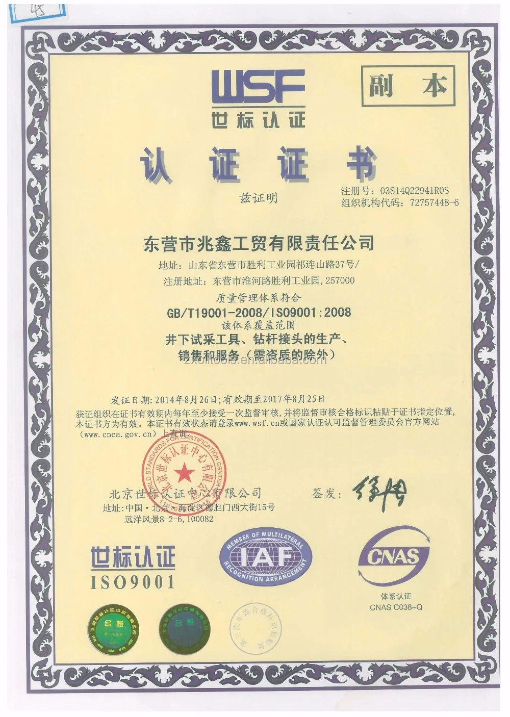 Zhaoxin Industry & Trade Company, Ltd. of Dongying City is located in the hinterland of beautiful Yellow River Delta --- Dongying City normally called “ Petroleum City”. The company, which conducts scientific research, development, manufacture, sale and after sale service, is one enterprise for oilfield tool and equipment manufacture.