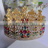 Fancy Colored Rhinestone Crystal Tiara Bridal Gold Wedding Prom Crown