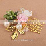 Bridal Hair Accessories Wedding Gold Metal Pearl Flower Leaf Hair Comb Hairpin