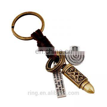 High Quality Braided Leather With Alloy Bullet Pendant Keychain for Men