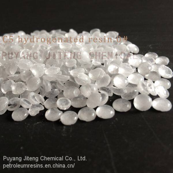 C5 hydrogenated hydrocarbon resin is obtained from polymerization and hydrogenation C5 fraction, by-product of ethylene derived from the process of cracking petroleum. With waterwhite color, excellent heat resistance, no odor, narrow molecular weight distribution, and good compatibility with EVA, SIS, SBS etc, C5 hydrogenated hydrocarbon resin is favorable tackifier material for adhesives etc.