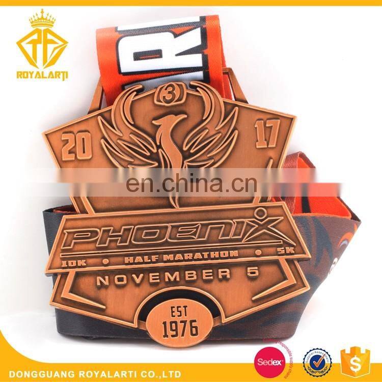 Antique Copper Zinc Alloy Custom Medal With Grosgrain RibbonUS$ 0.5 - 1MOQ: 100 Pieces