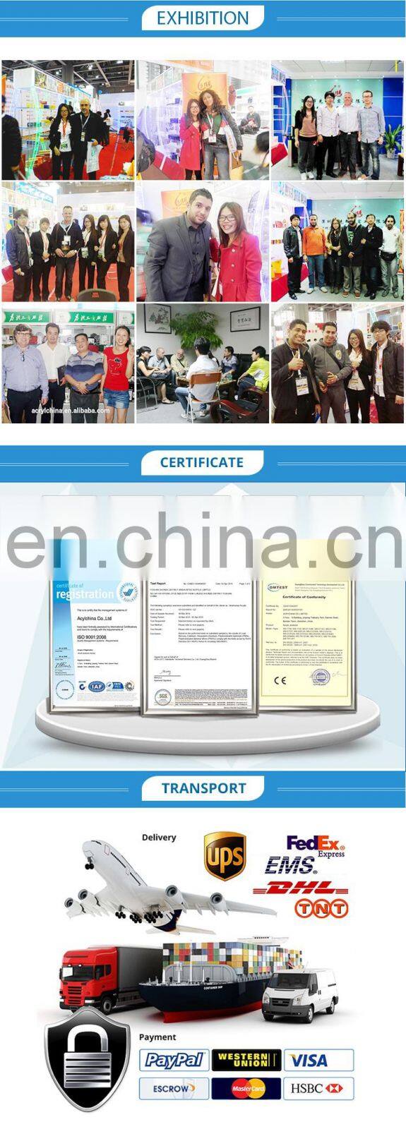 Acryl China Co, .Ltd. is a factory producing all kind acrylic productions. Our factory covers 3,000 square meters and has about 150 employees. After 18 years’ development, we have accumulated more and more producing and working experience.