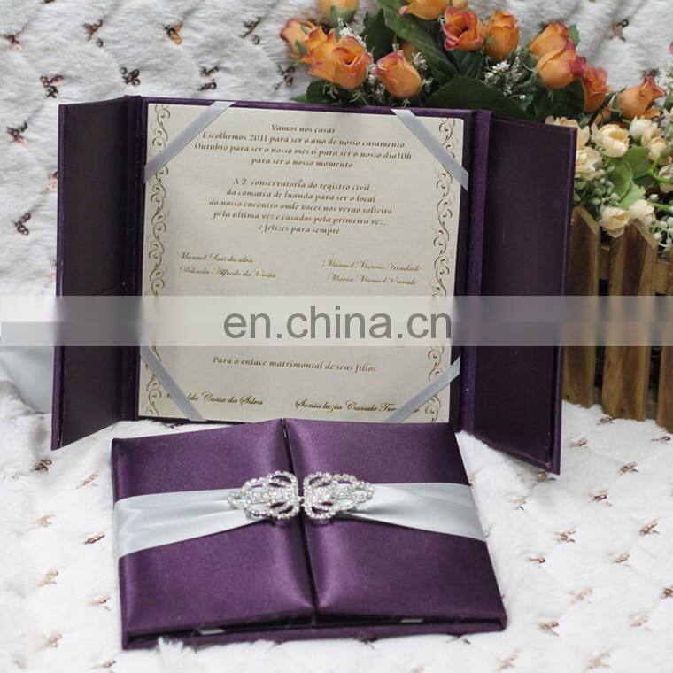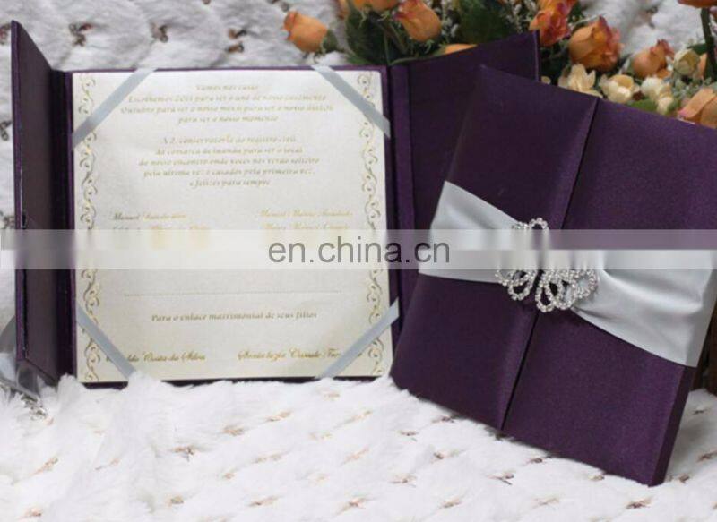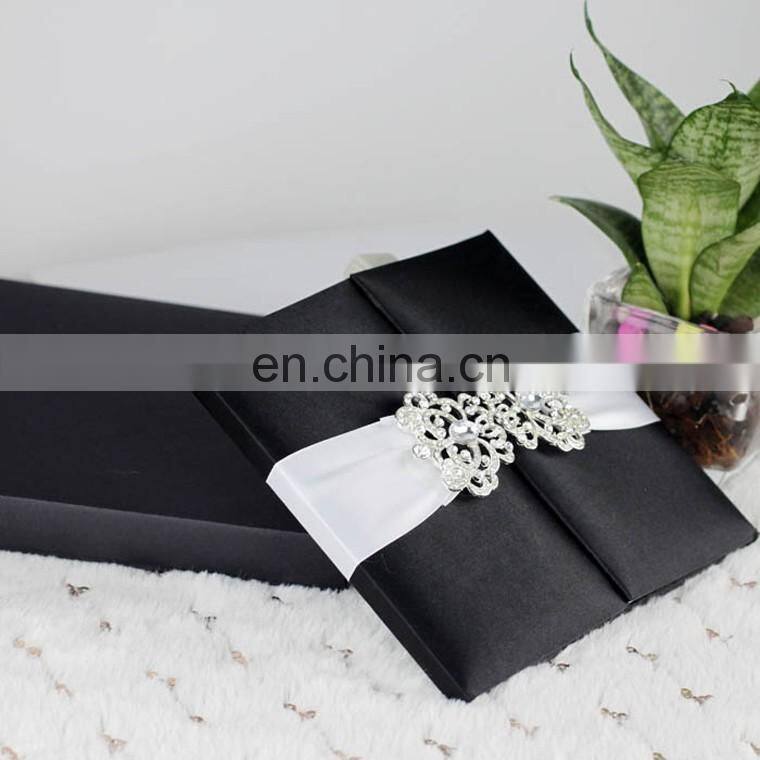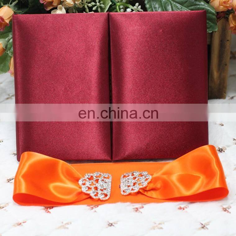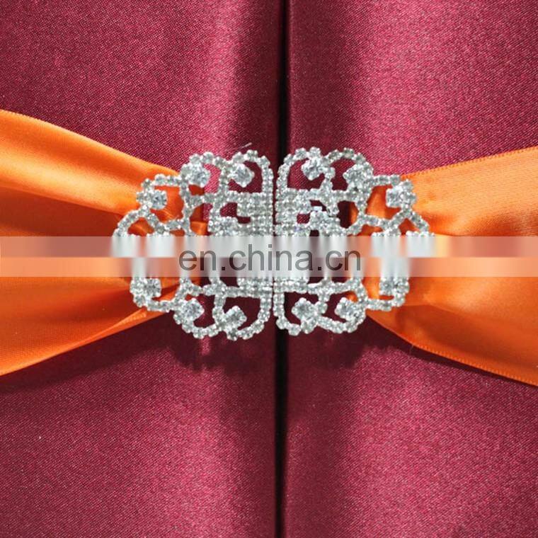 Fashion Diamond Pair Buckle for Gold Silk Wedding Invitation With Gold Satin Ribbon And Rhinestone Brooch Buckle