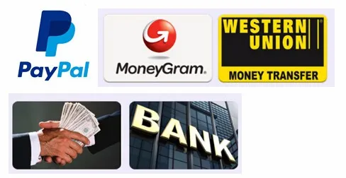 Paypal,Money Gram,Western Union,T/T(bank transfer)