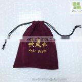 New Design Custom Hair Dryer Velvet Pouch Drawstring Bag Made in China