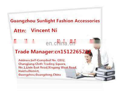 Guangzhou Sunlight Fashion Accessories is a comprehensive manufacturer and trading company of fabric and fashion accessories.Our products mainly include various fabric such as wool fabric,cotton fabric,polyster fabric,ect. and fashion accesories such as rhinestone brooch,rhinestone buckle,rhinestone applique,wedding favors,statement necklace,ect.