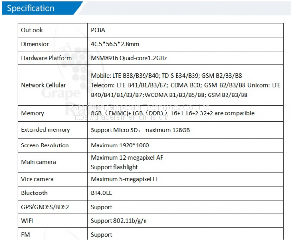 equipment,which can be supported by Qualcomm’s ® MSM8916 platform.