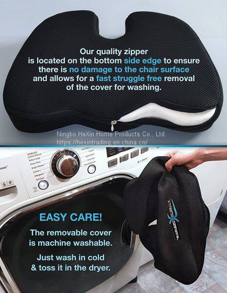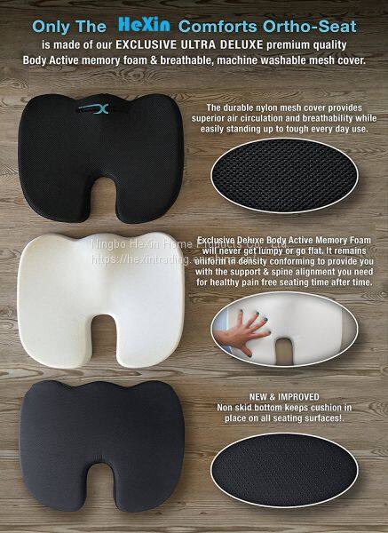 2.THE ORTHO-SEAT MEMORY FOAM COCCYX SEAT CUSHION IS ERGONOMICALLY DESIGNED WITH A DOCTOR RECOMMENDED U shaped cut out, creating a COCCYX COMFORT SPACE that allows your tailbone to "float" rather than being compressed against the seating surface bearing the weight of your body. The CONTOUR SURFACE DESIGN distributes body weight across the seat, relieving pressure points on tailbone and lumbar.