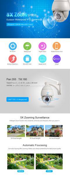 | Zoom | 5x Optical zoom, and Sricam App supports 4x digital zoom. | |