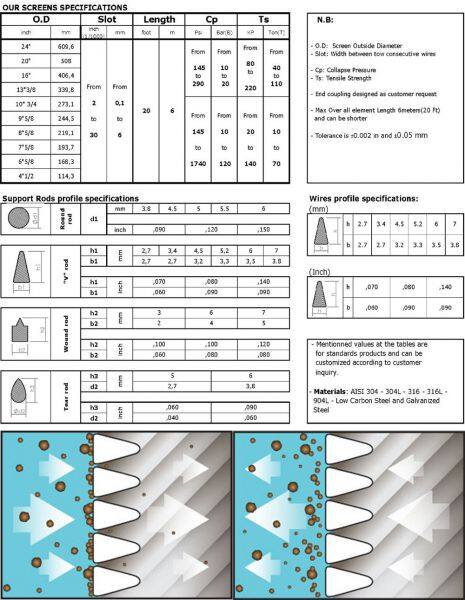 The support wires can be round wires, triangular wires or trapezoidal wires, while the filter wires is triangular wires(V shape wires).