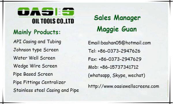 Packing Details: OASIS 304 316L water well screens/wedge wire screen/stainless steel wire meshes with thread connection are packed with bubble bag or woven bag and then with wooden strip or in wooden case(fumigation certificate).