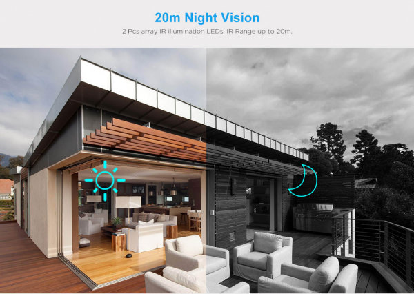 2) 2 pcs Array LED, IR distance 20 M