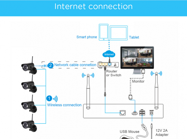 NVR Otdoor Weatherproof IP Camera Sricam 720P HD Wireless Security Camera System 4CH+4Ccameras