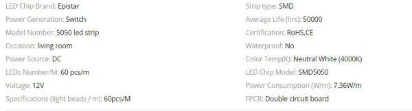 Home > Products > 12V LED Strip+Power > DC12V Neutral White 4000K LED Strip 5050 60led/m,5m/lot Flexible Light 5050 LED Strip Light IP20 IP65