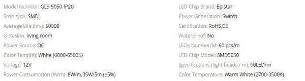 LED Strip 5050 120LEDs/m 5M 600LED Super Bright 5050 LED Flexible Strip Light White,White Warm DC12VUS$ 12 - 22.98MOQ: 1 Set