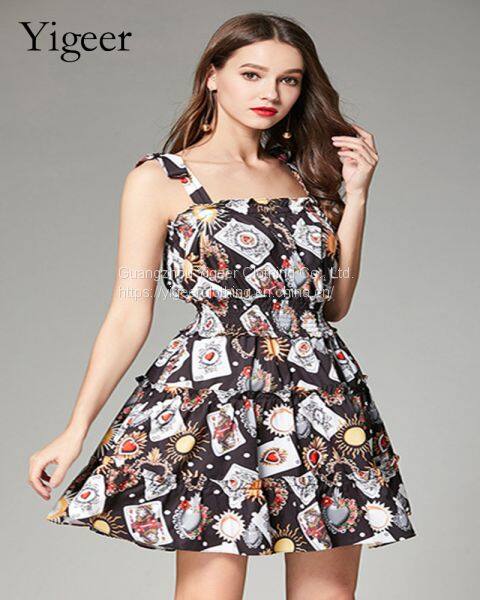 Poker Printed Strap Strings Floral Dress With Invisible Zip in Back