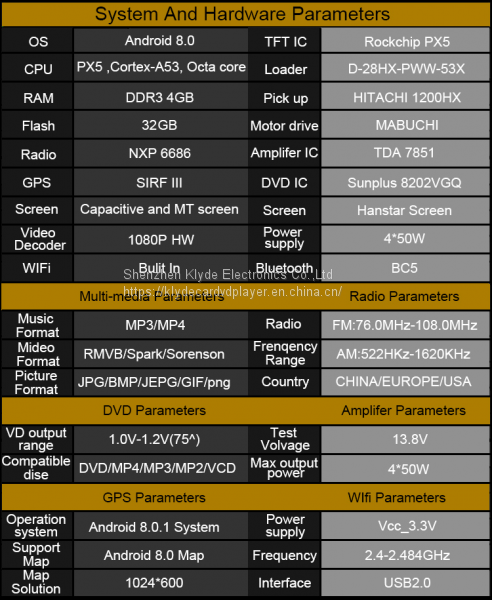 Klyde Android Car Multimedia palyer have radio function, CD player, bluetooth, built-in WIFI, mirror link, mp3, mp4 etc, and our device support gps service, the CPU is Octa core Rockchip PX5 Cortex A53, it is more powerful and more stable