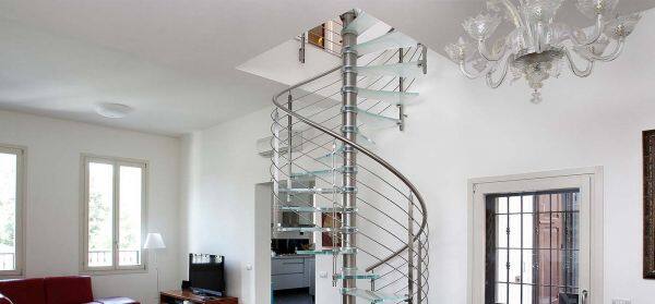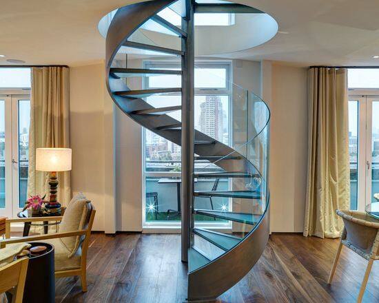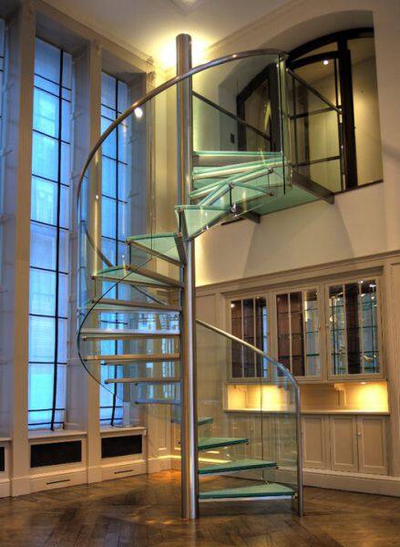 Modern Spiral Staircase in stainless steel and wood/Wood Spiral Staircase and stainless steel balustrade