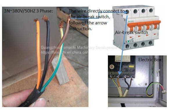 The instruction of three phase electric wires connection to the electric box for rotary rack oven: