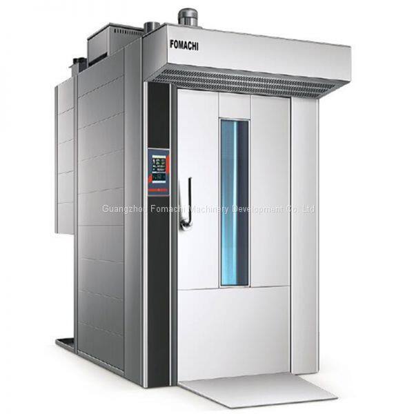 Commercial Industrial Rotary Bread Baking Oven 32 Trays Digital Control Panel Electric Type Rotary Rack Oven with Steam Function and High Efficiency to Bake Different Pastries Bakery Oven FMX-RF32DE Made in FOMACHI COMPANY.