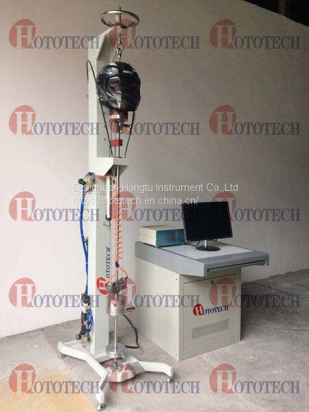 With certain initial load apply on the helmet strap system for a certain length of time, then with a certain weight weights fall from certain height and make the impact force also applied on the strap system, thereby to judge strap system’s resistance tensile performance