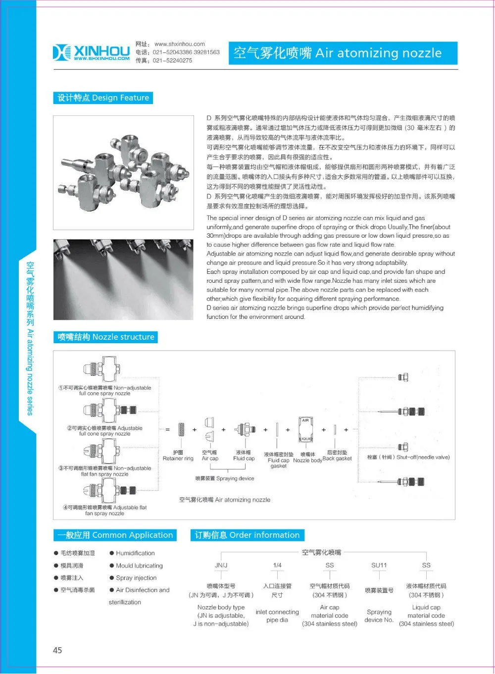 Adjustable air atomizing nozzle can adjust liquid flow,and generate desirable spray without change air pressure and liquid pressure.So it has very strong adaptability.