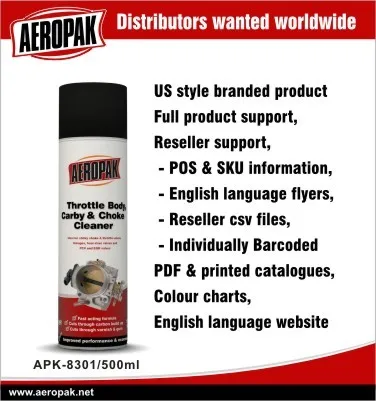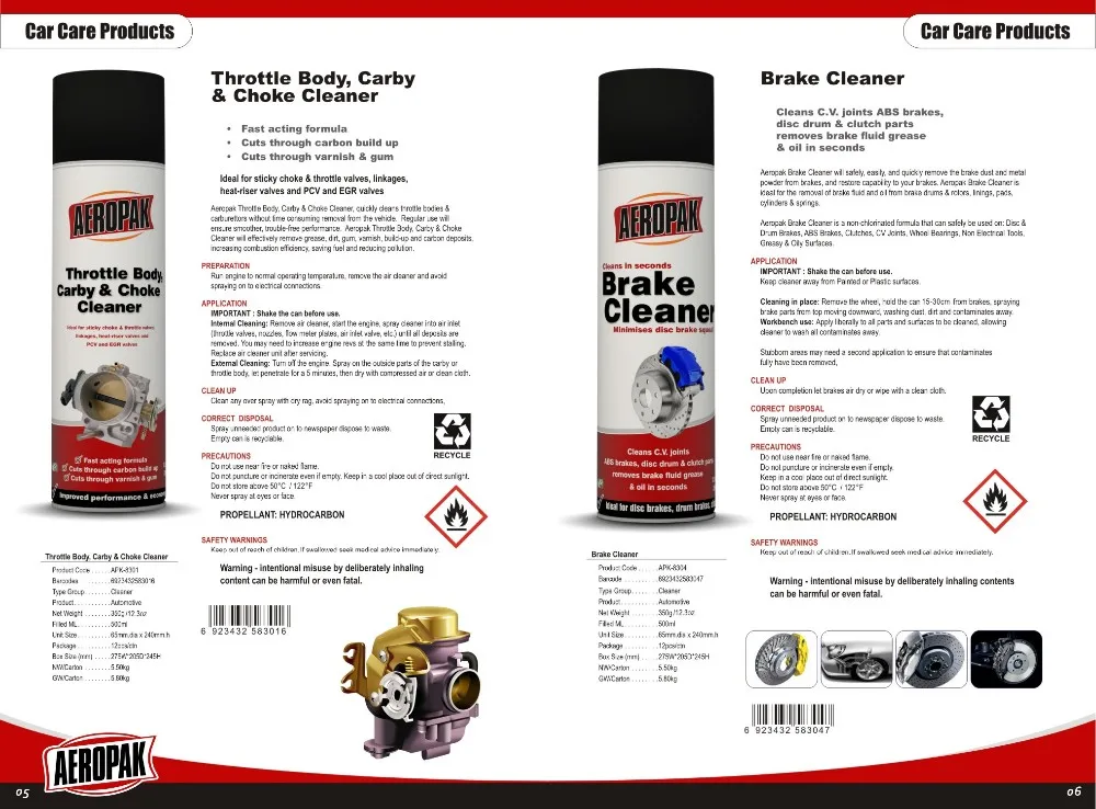 Aeropak Throttle Body, Carby & Choke Cleaner, quickly cleans throttle bodies & carburettors without time consuming removal from the vehicle. Regular use will ensure smoother, trouble-free performance. Aeropak Throttle Body, Carby & Choke Cleaner will effectively remove grease, dirt, gum, varnish, build-up and carbon deposits, increasing combustion efficiency, saving fuel and reduce pollution.
