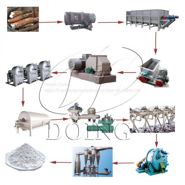 Cassava is in high in starch. If Cassava is made into starch, it has gone through several steps, including cassava cleaning and washing, cassava grinding, starch extraction, filtering and sanding, starch concentration and purification, starch and drying, sieving and packing. These are the main steps of cassava starch processing line. And the following part is to introduce the functions of main equipments in cassava starch processing line.