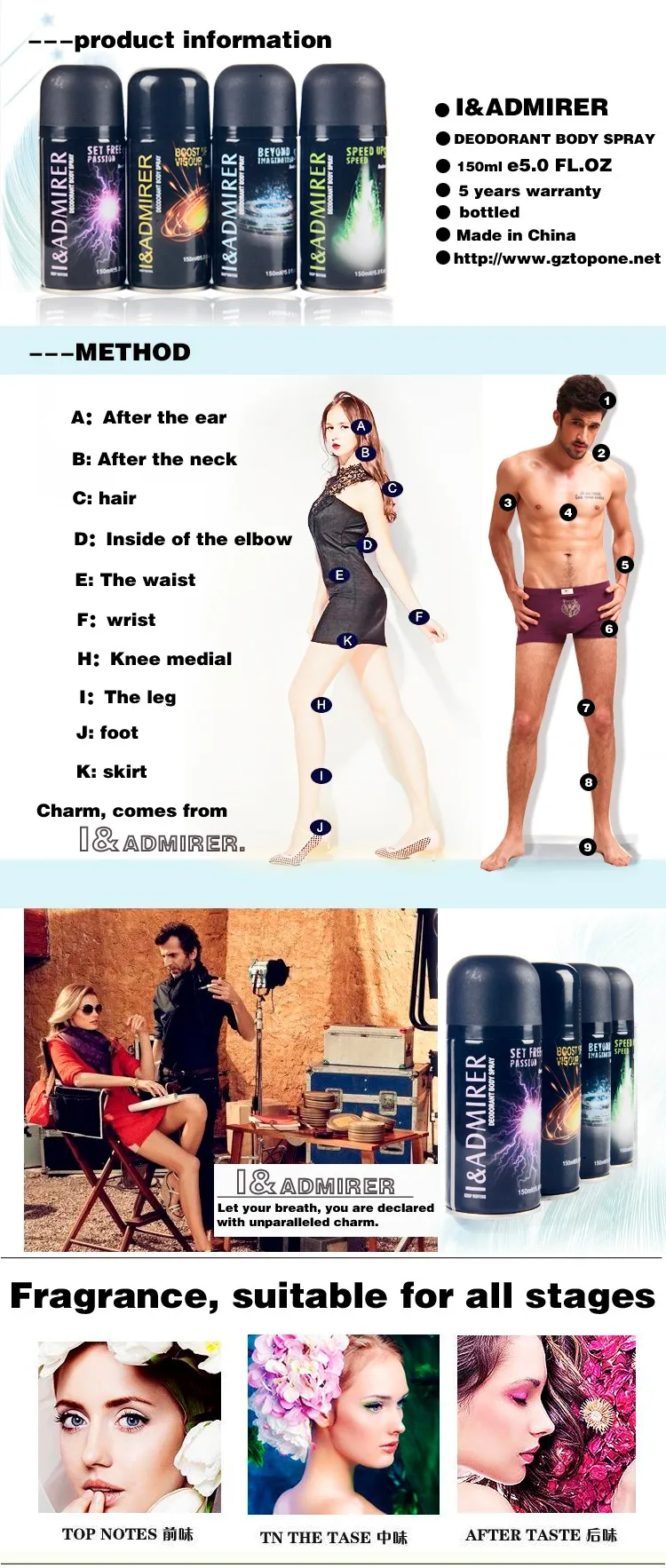 4, style:man,woman,sports,etc. deodorant body spray: Sunring deodorant body spray can quickly remove the unpleasing smell , leave the Fragrance on the body for a long time. Deodorant spray for men with many fragrance. This nicely perfumed deodorant spray is refreshing for all the body.use the best imported