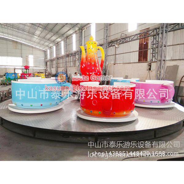 Coffee cup rides is the latest amusement equipment, when chassis is rotating in one direction, each small cup will be rotating in the opposite direction.