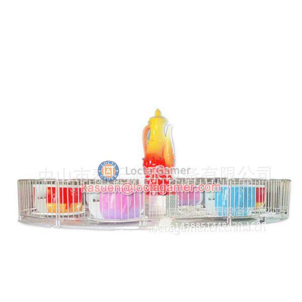The kiddie ride coffee cup rides has 4/6/9 cups three styles. And every one cup could be sat 4 people. It can be used at park, stadium, tourism, marketplace etc.