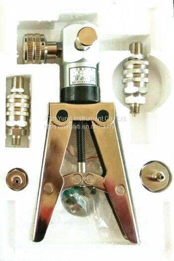 The hand-operating pressure pump is portable, light weight, wide temperature range, easy to use. There is a trim adjustment handle valve and switch valve on the pump, so that it is easy to adjust the pressure or exhaust the air. There are also matched fast connection, nylon hose, instrument connector etc, used to connect the calibrated instrument and the standard gauge. The pump is easy to carry and to connect with the calibrated instruments in the field, so the operator can calibrate the instrument fast and simple.