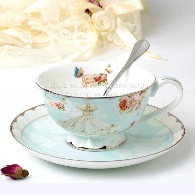 Chaozhou Manufacturer Top Quality Ceramics Latest Color Design Coffee Cup With Saucer for Sale